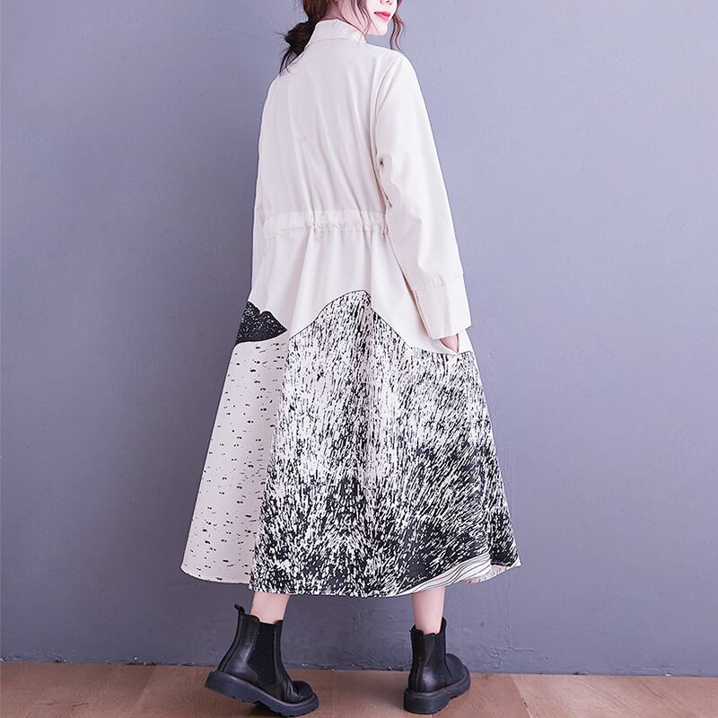 レディース ワンピース シャツワンピース 長袖 大人 おしゃれ かっこいい 大人女子 個性的 存在感 白 ホワイト 黒 ブラック プリント デート お出かけ 女子会 休日 楽ちん 送料無料 | Rena 韓国ファッション レディースアパレル