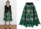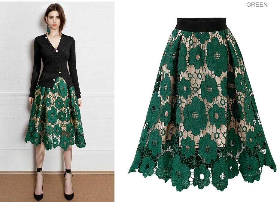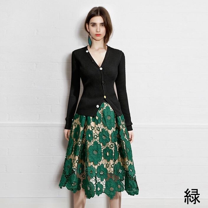 レディース スカート ボトムス 膝下 ミディアム丈 Aライン レース 大人可愛い きれいめ 大人 上品 おしゃれ 大人女子 エレガント L XL 2XL 3XL 4XL 黒 ブラック 緑 グリーン 花柄 デート お出かけ 女子会 休日 着回し 送料無料 | Rena 韓国ファッション レディースアパレル