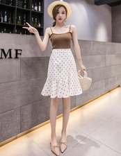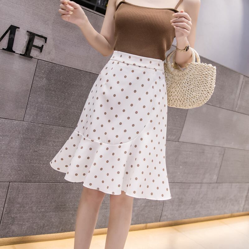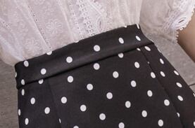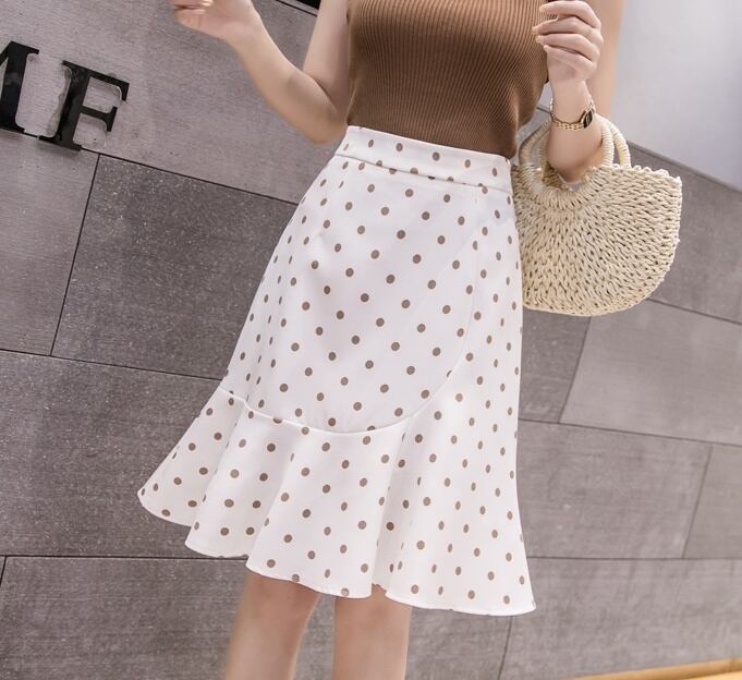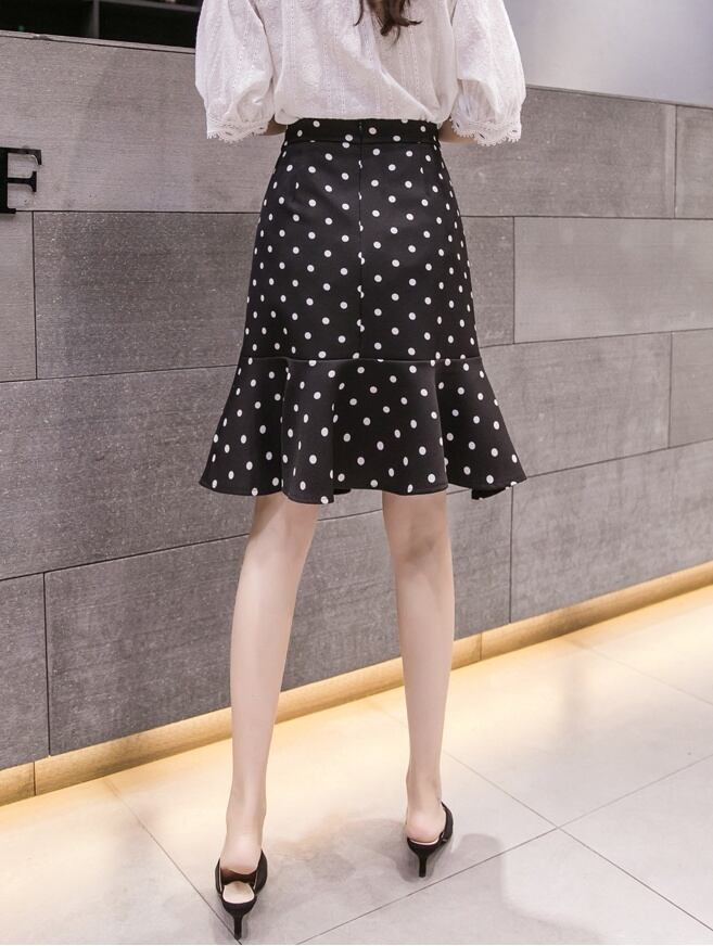 レディース スカート ボトムス ミディアム丈 Aライン 裾フレア かわいい 大人可愛い 上品 おしゃれ お洒落 キュート ガーリー エレガント S M L XL 2XL 白 ホワイト 黒 ブラック ドット柄 水玉 デート お出かけ 女子会 休日 着回し モテ 送料無料 | Rena 韓国ファッション レディースアパレル
