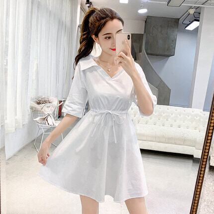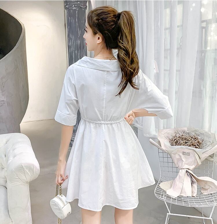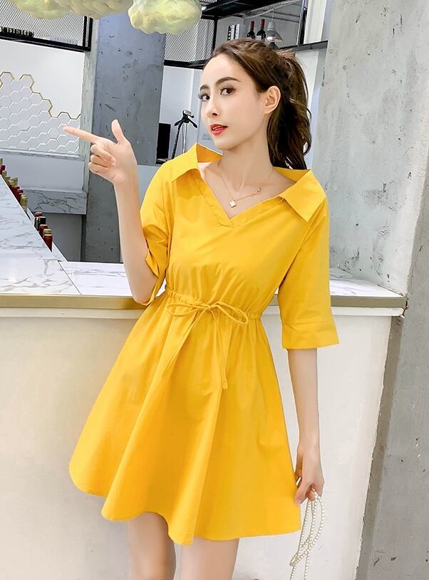 レディース ワンピース ミニ ミニ丈 膝上 袖あり 5分袖 五分袖 Vネック 襟付き ウエストリボン かわいい きれいめ シンプル 上品 おしゃれ ラブリー キュート ガーリー S M L XL 白 ホワイト 黄色 無地 春 夏 10代 20代 学生 デート お出かけ 女子会 休日 韓国系 ファッション コーデ スタイル 美脚 脚長 送料無料 | Rena 韓国ファッション レディースアパレル