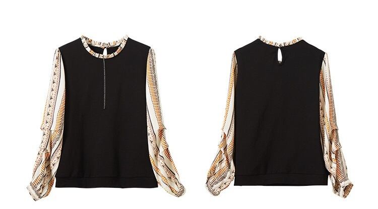レディース トップス シャツ カットソー 袖あり 長袖 ラウンドネック 襟なし 切り替えデザイン シフォン かわいい 大人可愛い きれいめ カジュアル 大人 おしゃれ お洒落 かっこいい レトロ アジアン エスニック 大人可愛い こなれ感 ガーリー ルーズ 個性的 S M L XL 2XL 柄 春 夏 10代 20代 30代 女性用 ママ OL 学生 デート お出かけ 女子会 休日 イベント 旅行 普段使い お揃い 韓国 韓国系 オルチャン ファッション コーデ 送料無料 インスタ映え | Rena 韓国ファッション レディースアパレル