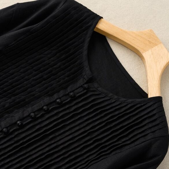 胸元のフリルとボタンがレトロで大人可愛い一枚。