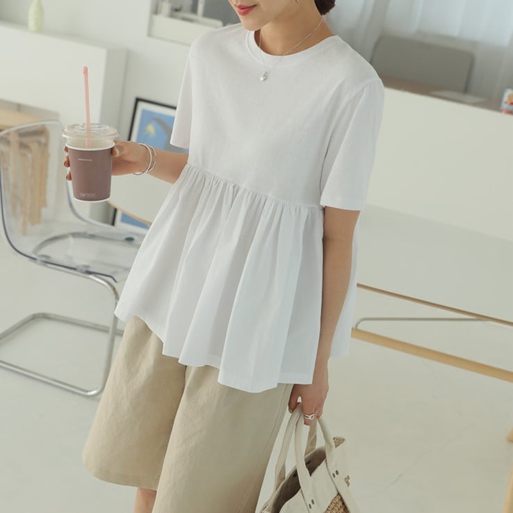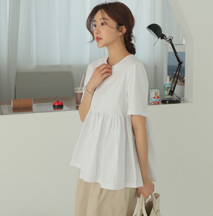 レディース トップス Tシャツ カットソー 白シャツ 白トップス 袖あり 半袖 ラウンドネック フレア 切り替えデザイン 裾フレア フリル かわいい 大人可愛い きれいめ シンプル カジュアル お洒落 大人女子 ラフ ガーリー ルーズ 個性的 抜け感 S M L XL 2XL 白 ホワイト 黒 ブラック 大人カラー モノトーン 無地 春 夏 10代 20代 30代 女性用 ママ OL 学生 デート お出かけ 女子会 休日 リゾート 着回し 普段使い 韓国 オルチャン モテ 体系カバー 送料無料 | Rena 韓国ファッション レディースアパレル