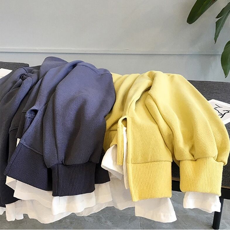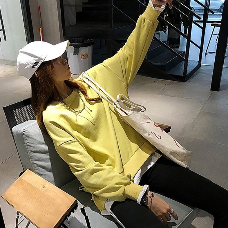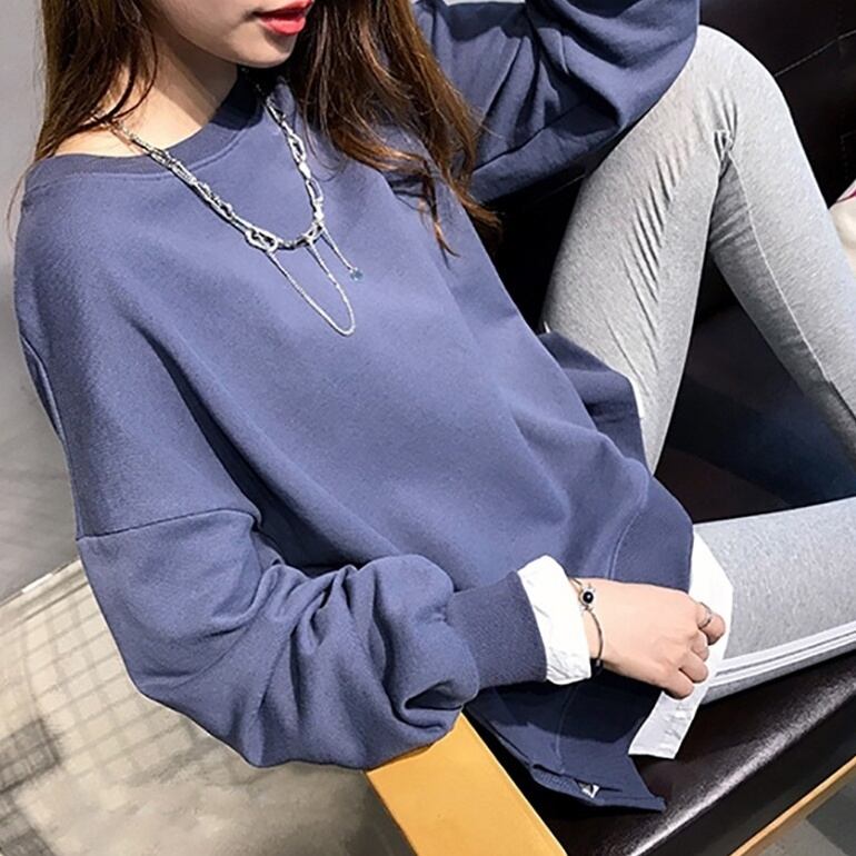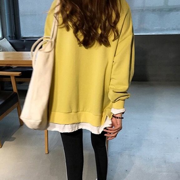 レディース トップス カットソー トレーナー 袖あり 長袖 ラウンドネック ドッキング レイヤード サイドスリット カジュアル おしゃれ お洒落 かっこいい こなれ感 ラフ メンズライク マニッシュ ボーイッシュ スポーティー ルーズ 個性的 M L XL 2XL 黄色 イエロー ネイビー 無地 春 秋 冬 10代 20代 30代 ユニセックス ママ 学生 通学 デート お出かけ 公園デビュー 女子会 休日 アウトドア 着回し 普段使い 重ね着 お揃い 双子 韓国 オルチャン 送料無料 | Rena 韓国ファッション レディースアパレル