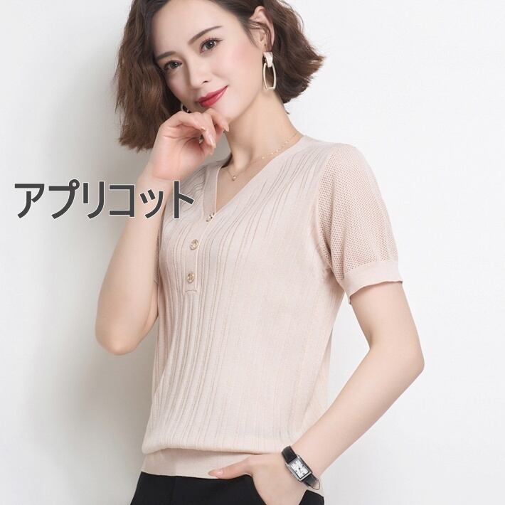 レディース トップス ニットソー 袖あり 半袖 Vネック 編み込み 透け感 シースルー サマーニット 大人可愛い きれいめ シンプル 大人 上品 おしゃれ 大人女子 ガーリー ルーズ 個性的 S M L XL 2XL 3XL 4XL ブラック レッド グレー ブラウン くすみカラー 大人カラー 春カラー アプリコット 無地 春 夏 謝恩会 二次会 20代 30代 40代 女性用 ママ オフィス OL 通勤 お出かけ 女子会 休日 着回し 普段使い 重ね着 韓国 ファッション コーデ スタイル 送料無料 | Rena 韓国ファッション レディースアパレル