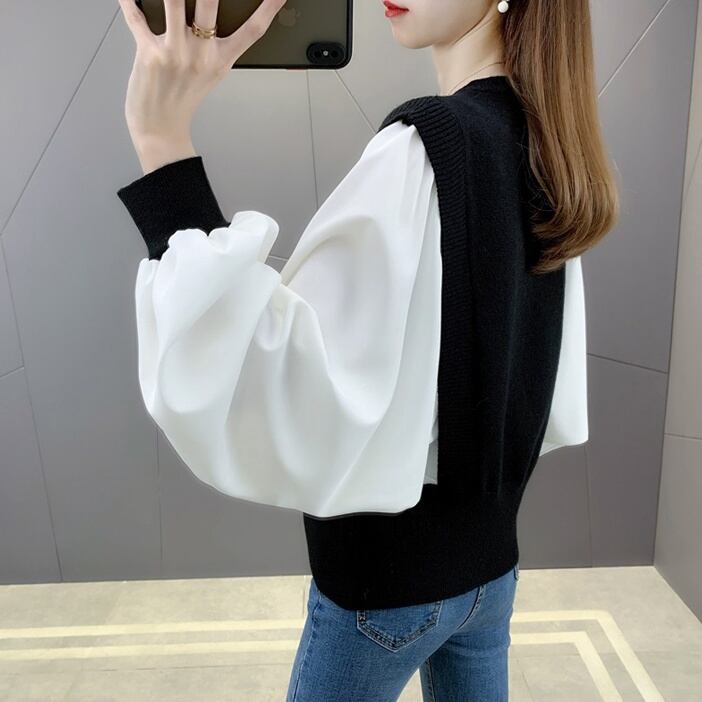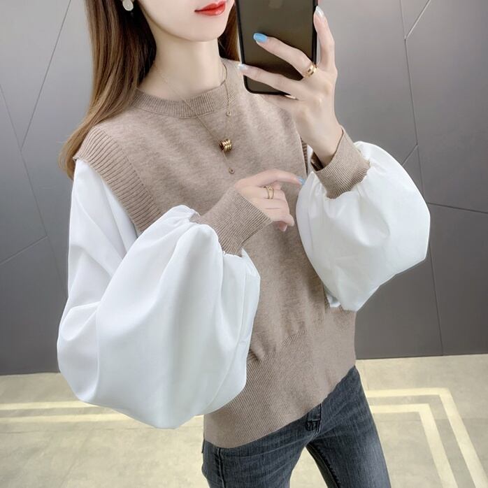 レディース トップス カットソー プルオーバー 袖あり 長袖 ボリューム袖 ラウンドネック ドッキング 切り替えデザイン 大人可愛い きれいめ カジュアル 大人 おしゃれ かっこいい 大人女子 ラフ キュート ガーリー ルーズ 個性的 S M L XL 黒 ブラック 灰色 グレー ベージュ くすみカラー 無地 秋 冬 10代 20代 30代 40代 OL 学生 デート お出かけ 公園デビュー 休日 イベント 旅行 着回し 普段使い 重ね着 韓国 韓国系 オルチャン ファッション コーデ 楽ちん 送料無料 | Rena 韓国ファッション レディースアパレル