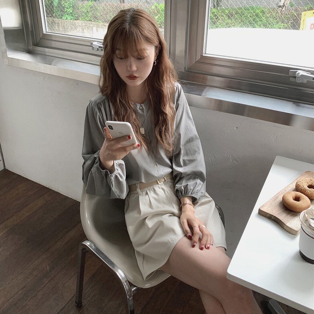 レディース トップス シャツ ブラウス カットソー 袖あり 長袖 Vネック Uネック ラウンドネック クルーネック 襟なし ポリエステル かわいい 大人可愛い シンプル カジュアル 大人 おしゃれ お洒落 大人可愛い 大人女子 S M L XL 灰色 グレー ベージュ 無地 春 夏 秋 10代 20代 30代 40代 オフィス ビジネス OL 通勤 デート お出かけ 女子会 お泊まり 休日 着回し 普段使い ファッション コーデ スタイル 送料無料 | Rena 韓国ファッション レディースアパレル
