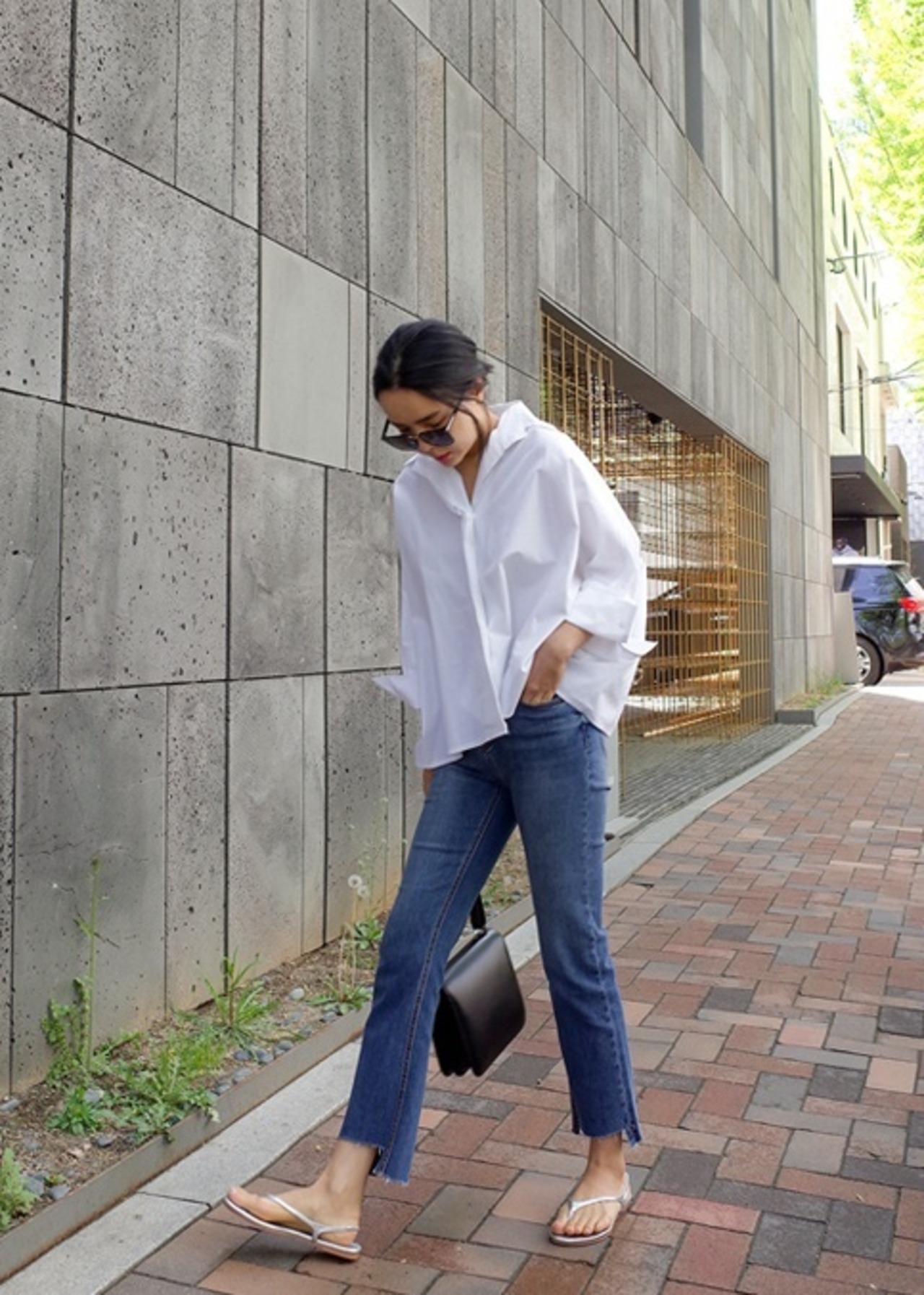 タイトなボトムスと合わせて着こなすのがおすすめ♪