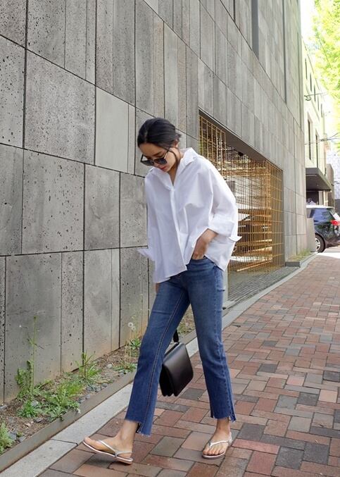 ドロップショルダー&裾フリルのこなれ感たっぷりのシャツ。