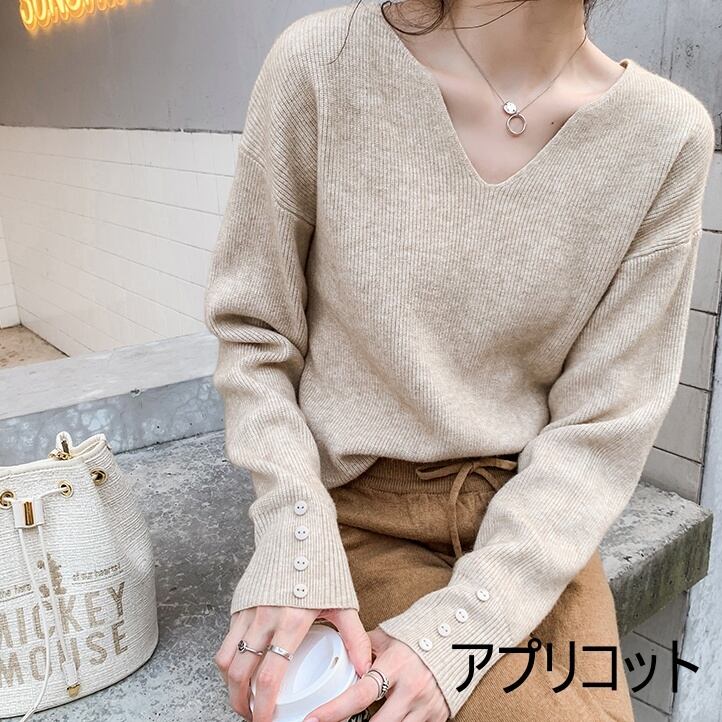 レディース トップス ニットソー 白トップス 袖なし 長袖 Vネック ニット かわいい 大人可愛い シンプル カジュアル 大人 おしゃれ お洒落 かっこいい S M L 白 ホワイト 黒 ブラック 茶色 ブラウン アプリコット 無地 春 秋 10代 20代 30代 40代 オフィス ビジネス OL 通勤 デート お出かけ 女子会 お泊まり 着回し 普段使い 重ね着 ファッション コーデ 送料無料 | Rena 韓国ファッション レディースアパレル
