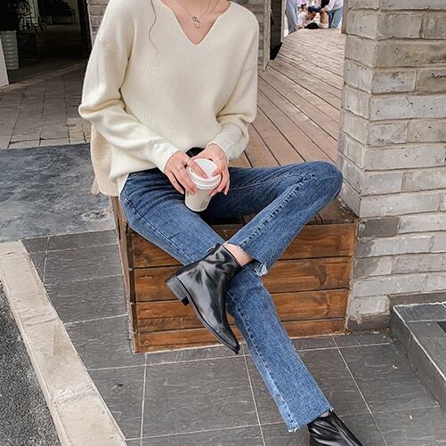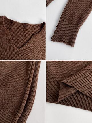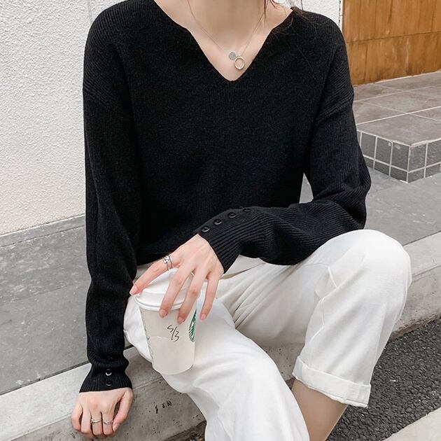 袖口のボタンがさりげないアクセントのセーター