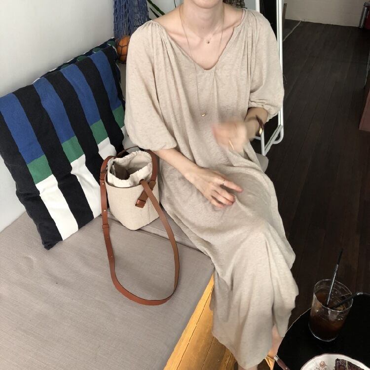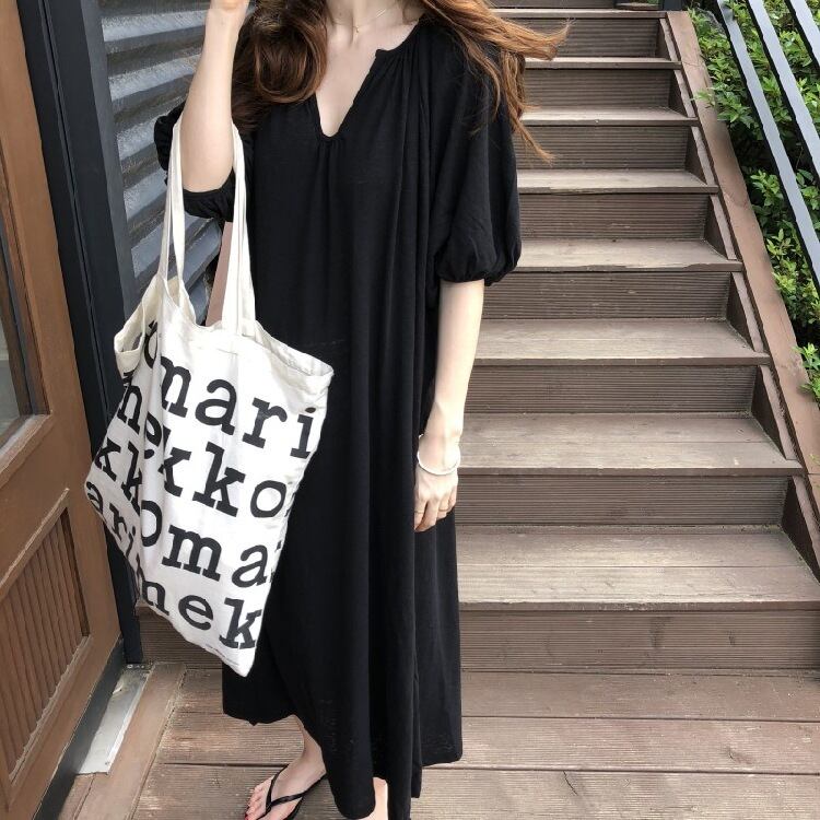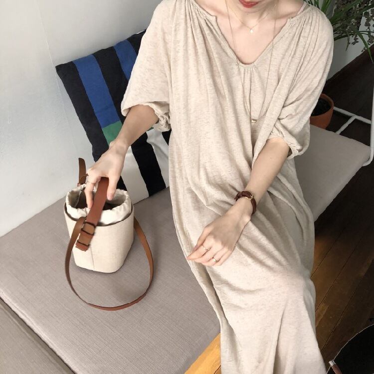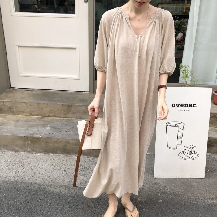 レディース ワンピース ロング ロング丈 半袖 Uネック ラウンドネック ワイド Aライン 綿 大人可愛い シンプル カジュアル 大人 おしゃれ お洒落 アジアン エスニック 大人可愛い 大人女子 ラフ M L ゆったり ゆる 黒 ブラック ベージュ 無地 春 夏 秋 10代 20代 30代 40代 50代 デート お出かけ 女子会 お泊まり 休日 リゾート 着回し 普段使い ファッション コーデ スタイル 楽ちん 送料無料 ゆったり | Rena 韓国ファッション レディースアパレル