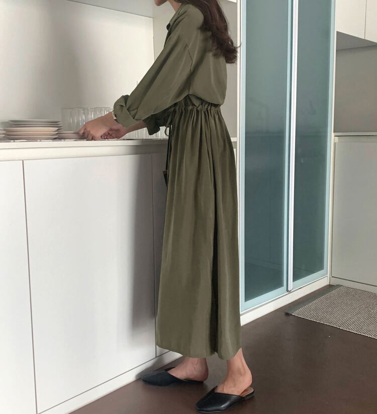 レディース ワンピース シャツワンピース ロング ロング丈 マキシ マキシ丈 袖あり 長袖 Vネック 襟付き ストレート リボン ウエストマーク ウエストリボン 薄手 大人可愛い きれいめ シンプル 大人 上品 おしゃれ お洒落 かっこいい 大人可愛い 大人女子 クール フリーサイズ カーキ 無地 春 夏 秋 10代 20代 30代 40代 デート お出かけ 女子会 お泊まり 休日 リゾート 旅行 着回し 普段使い ファッション コーデ スタイル モテ 美脚 脚長 送料無料