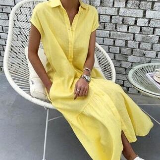 レディース ワンピース シャツワンピース ミモレ ミモレ丈 ロング ロング丈 袖あり 半袖 Vネック 襟付き Aライン 切り替えデザイン 裾フレア フリル 切り替えデザイン 透け感 綿 薄手 かわいい 大人可愛い シンプル 大人 上品 おしゃれ お洒落 大人可愛い 大人女子 S M L XL 黒 ブラック 黄色 ベージュ イエロー アプリコット 無地 春 夏 秋 10代 20代 30代 40代 マタニティ デート お出かけ リゾート 着回し 普段使い ファッション コーデ スタイル 体系カバー 送料無料 | Rena 韓国ファッション レディースアパレル