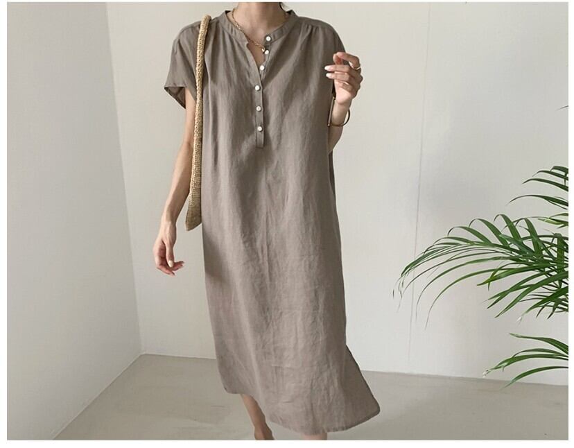 レディース ワンピース ミモレ ミモレ丈 袖あり 半袖 Uネック ラウンドネック クルーネック 襟なし ストレート 薄手 大人可愛い きれいめ シンプル カジュアル 大人 上品 おしゃれ お洒落 大人可愛い 大人女子 こなれ感 ラフ エレガント S M L XL ゆったり ゆる 黄色 ベージュ イエロー くすみカラー 無地 春 夏 秋 10代 20代 30代 40代 50代 マタニティ デート お出かけ 女子会 お泊まり 休日 旅行 着回し 普段使い ファッション コーデ スタイル 送料無料 ゆったり | Rena 韓国ファッション レディースアパレル