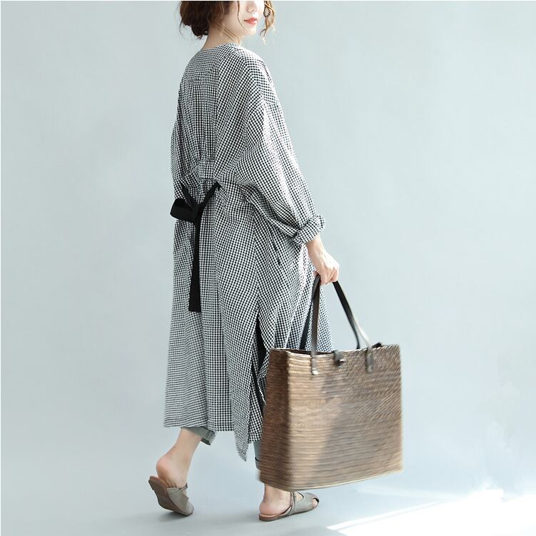 レディース ワンピース シャツ ブラウス カットソー シャツワンピース ミモレ ミモレ丈 ロング ロング丈 袖あり 長袖 Vネック 襟なし Aライン リボン ウエストリボン バックリボン サイドスリット 薄手 大人可愛い カジュアル 大人 上品 おしゃれ お洒落 大人可愛い 大人女子 ラフ エレガント フリーサイズ ゆったり ゆる チェック柄 春 夏 秋 10代 20代 30代 40代 50代 マタニティ デート お出かけ 女子会 お泊まり 休日 着回し 普段使い 体系カバー 送料無料 | Rena 韓国ファッション レディースアパレル