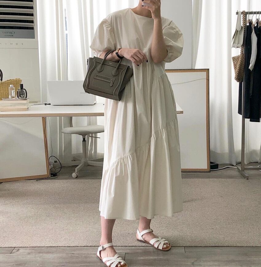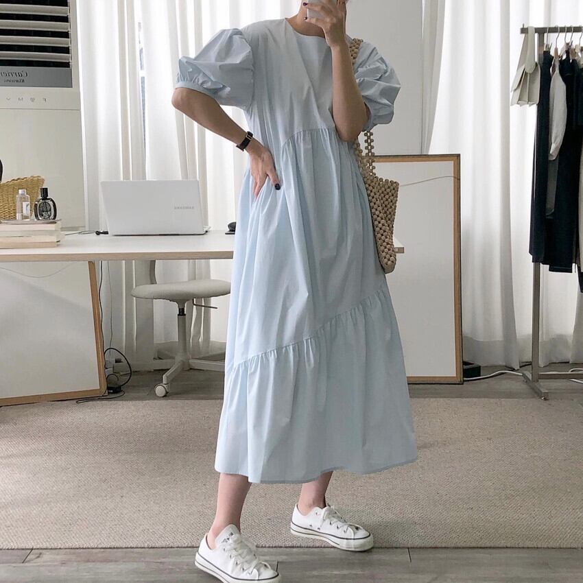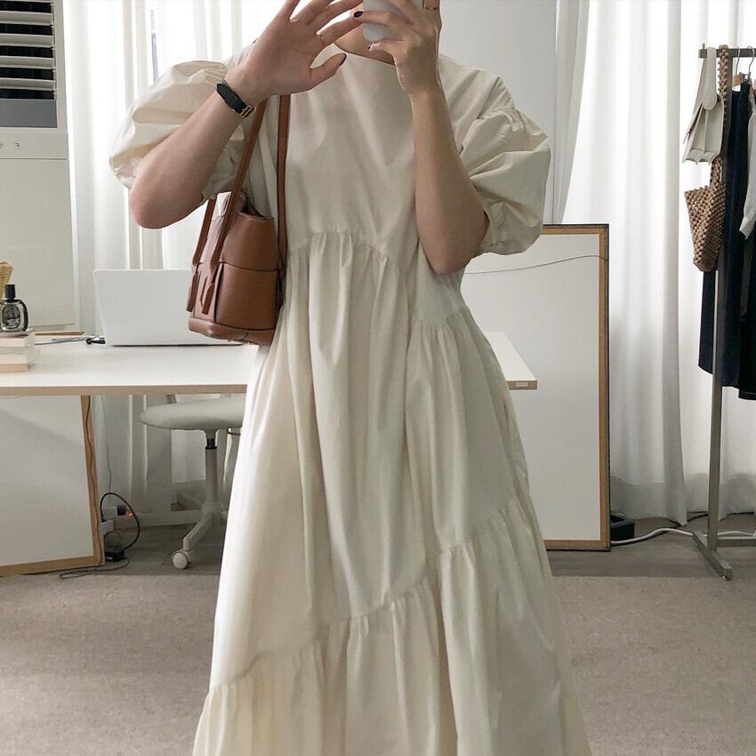 レディース ワンピース シャツワンピース ロング ロング丈 袖あり 半袖 ボリューム袖 パフスリーブ 切り替えデザイン ティアード かわいい 大人可愛い きれいめ シンプル カジュアル 大人 おしゃれ お洒落 大人可愛い 大人女子 こなれ感 ラフ メンズライク XL 2XL 3XL ゆったり 白 ホワイト 黒 ブラック 大人カラー 無地 春 夏 秋 10代 20代 30代 40代 学生 通学 デート お出かけ 女子会 休日 旅行 海 プール 韓国 韓国系 コーデ モテ 送料無料 ゆったり | Rena 韓国ファッション レディースアパレル