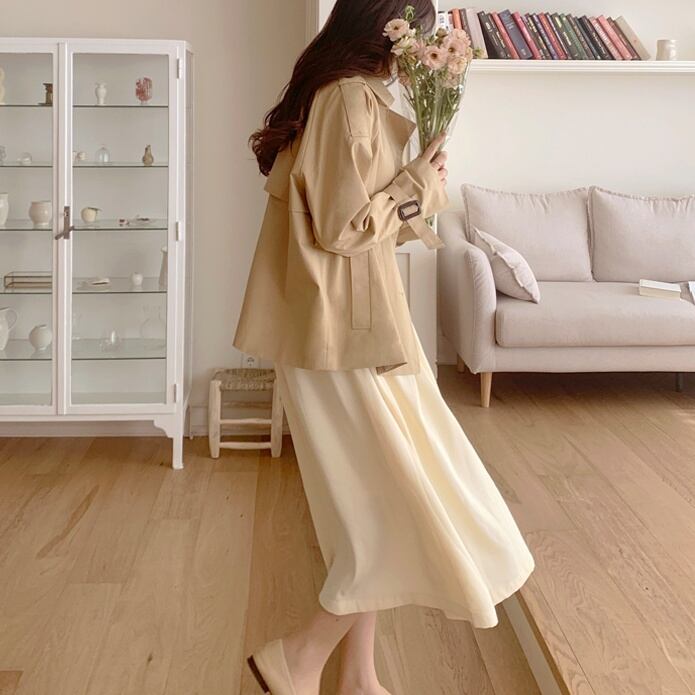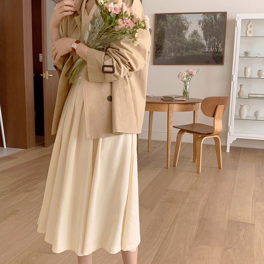 プリーツスカートのフェミニンなシルエットのワンピース。