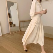 レディース ワンピース シャツワンピース ロング ロング丈 七分袖 長袖 ボリューム袖 ドルマンスリーブ Vネック 切り替えデザイン ティアード シフォン リボン かわいい 大人可愛い きれいめ シンプル カジュアル 大人 おしゃれ お洒落 大人可愛い 大人女子 こなれ感 ラフ メンズライク S M L XL ゆったり 白 ホワイト 大人カラー 無地 春 夏 秋 10代 20代 30代 40代 学生 通学 デート お出かけ 女子会 休日 旅行 海 プール 韓国 韓国系 コーデ モテ 送料無料 ゆったり | Rena 韓国ファッション レディースアパレル