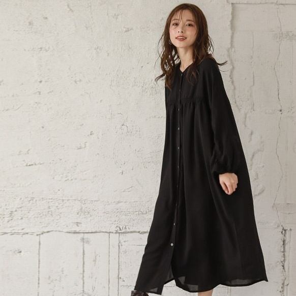 レディース ワンピース シャツワンピース ロング ロング丈 袖あり 長袖 襟なし ストレート 前開き 2way 薄手 シンプル カジュアル おしゃれ お洒落 かっこいい 大人可愛い 大人女子 こなれ感 ラフ メンズライク フリーサイズ ゆったり 黒 ブラック 茶色 ブラウン ベージュ 秋カラー 無地 春 夏 秋 20代 30代 40代 休日 着回し 重ね着 韓国 韓国系 ファッション 楽ちん 体系カバー | Rena 韓国ファッション レディースアパレル
