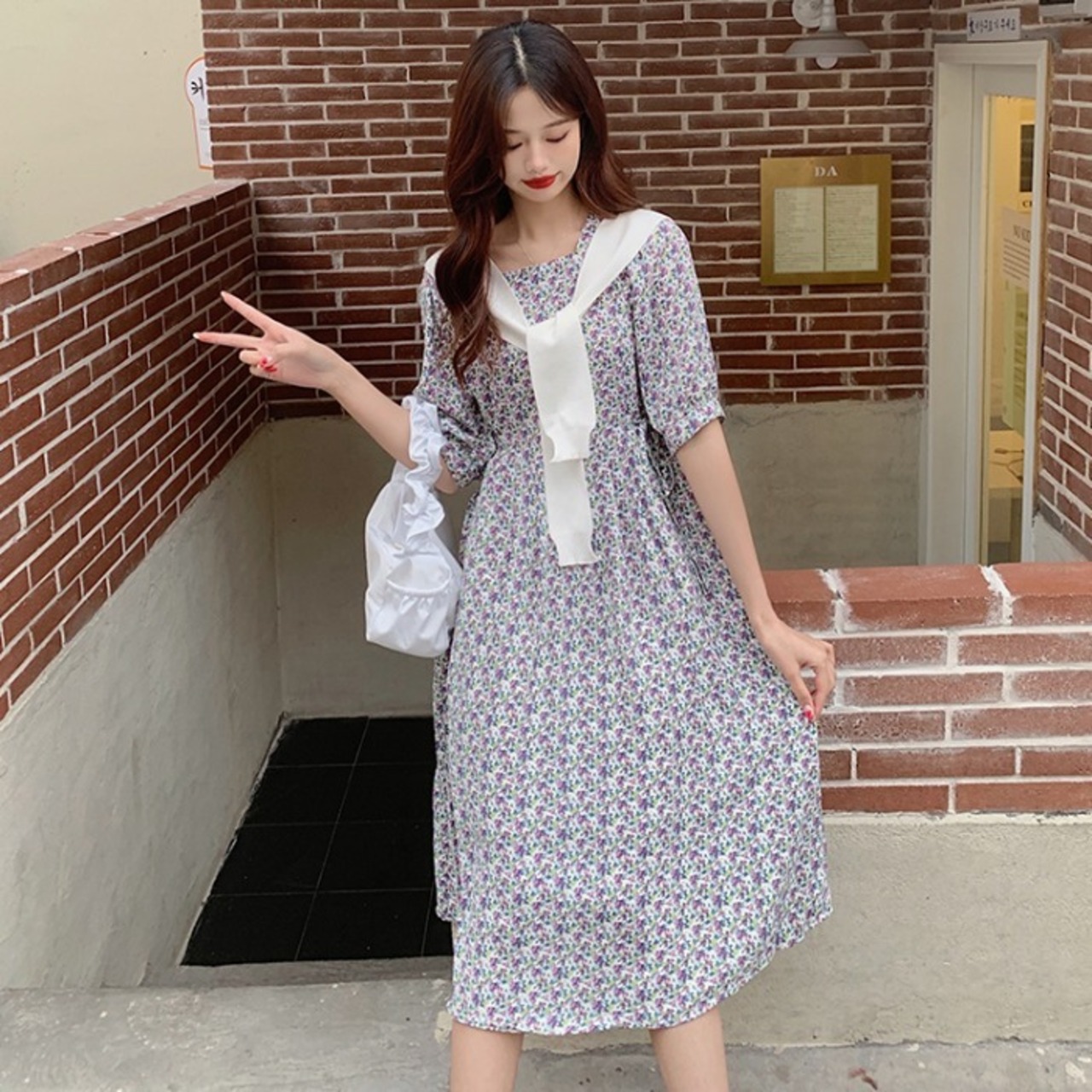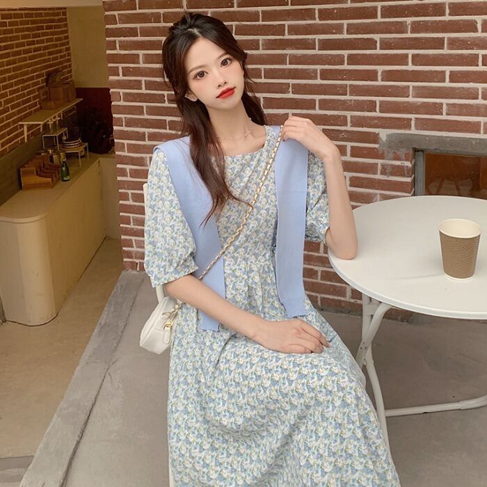 レディース ワンピース ミモレ ミモレ丈 ロング ロング丈 袖あり 半袖 5分袖 五分袖 襟なし シフォン 大人 上品 おしゃれ お洒落 大人可愛い 大人女子 メンズライク ラブリー キュート ガーリー フリーサイズ ブルー 紫 パープル ピンク 水色 花柄 小花柄 フラワー 春 夏 20代 30代 デート お出かけ 女子会 お泊まり 休日 パーティー リゾート 旅行 韓国 韓国系 ファッション モテ 送料無料 インスタ映え | Rena 韓国ファッション レディースアパレル
