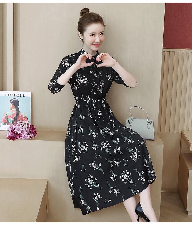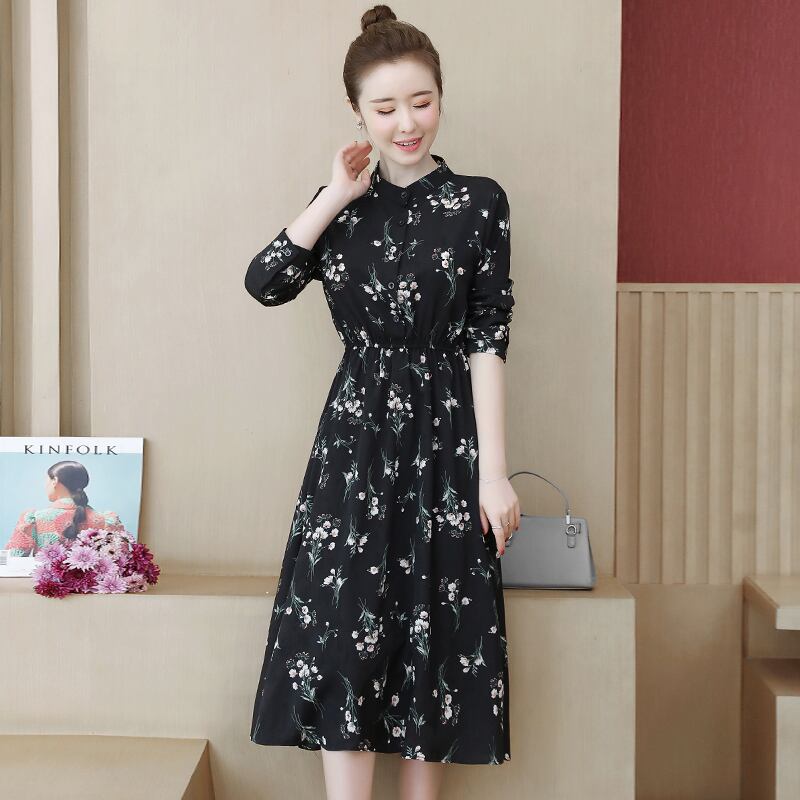 レディース ワンピース 膝下 ミモレ ミモレ丈 袖あり 長袖 襟なし きれいめ 大人 上品 おしゃれ お洒落 大人可愛い 大人女子 メンズライク ラブリー キュート ガーリー L XL 2XL 3XL 4XL 5XL 黒 ブラック 花柄 小花柄 フラワー 春 夏 秋 20代 30代 40代 デート お出かけ 女子会 お泊まり 休日 リゾート 旅行 海 韓国 韓国系 ファッション モテ 送料無料 | Rena 韓国ファッション レディースアパレル