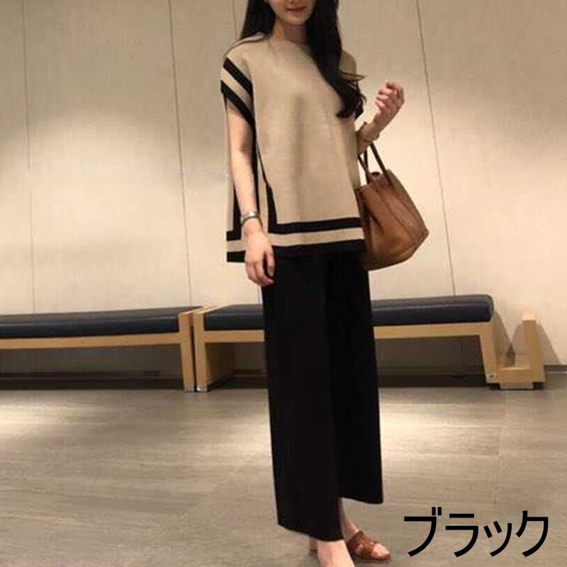 レディース トップス ボトムス パンツ セットアップ ニット ワイドパンツ アンクル丈 袖あり 半袖 Uネック ラウンドネック ワイド ニット 上下セット 2点セット ツーピース 大人可愛い シンプル カジュアル おしゃれ お洒落 大人可愛い 大人女子 こなれ感 メンズライク 白 ホワイト 黒 ブラック グレー 春 夏 秋 10代 20代 30代 40代 学生 通学 デート お出かけ 休日 韓国 韓国系 ファッション モテ 送料無料 | Rena 韓国ファッション レディースアパレル