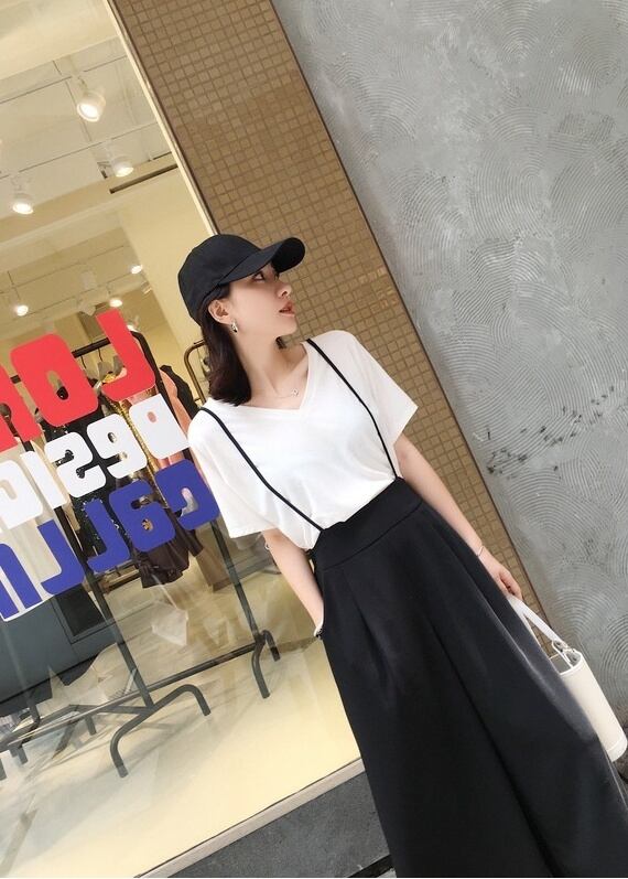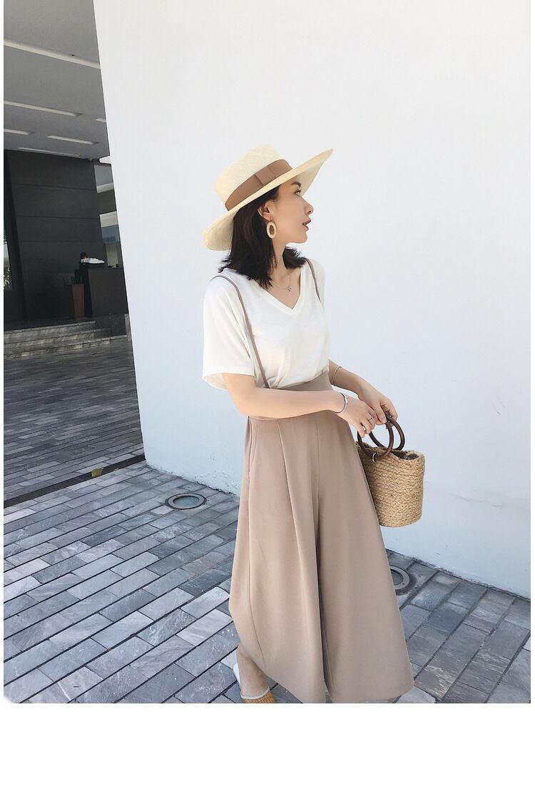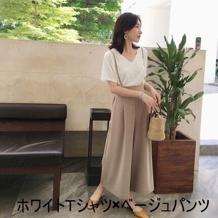 レディース トップス ボトムス パンツ セットアップ Tシャツ ガウチョパンツ ロング ロング丈 袖あり 半袖 Vネック ワイド サスペンダー 上下セット 2点セット ツーピース 大人可愛い シンプル カジュアル おしゃれ お洒落 大人可愛い 大人女子 こなれ感 メンズライク ガーリー S M L XL 2XL 白 ホワイト 黒 ブラック グレー ベージュ 無地 春 夏 10代 20代 30代 40代 学生 通学 デート お出かけ 女子会 休日 韓国 韓国系 ファッション モテ 送料無料 | Rena 韓国ファッション レディースアパレル
