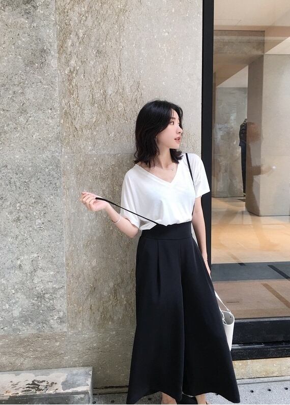 ホワイトTシャツ×ブラックパンツ/ホワイトTシャツ×ベージュパンツ/ブルーTシャツ×ブラックパンツ