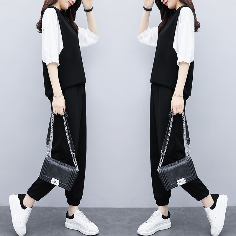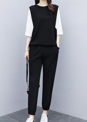 レディース セットアップ ジョガーパンツ 袖あり Uネック ポケット 上下セット シンプル カジュアル おしゃれ お洒落 かっこいい こなれ感 ラフ メンズライク S M L XL 2XL 3XL 黒 ブラック 無地 春 夏 10代 20代 30代 学生 通学 デート お出かけ 女子会 リゾート 旅行 海 プール 着回し 普段使い 韓国 韓国系 ファッション 脚長 送料無料 | Rena 韓国ファッション レディースアパレル