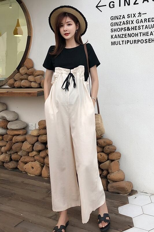 授乳口の付いた産前産後用の半袖Tシャツとオーバーオールのセットです。