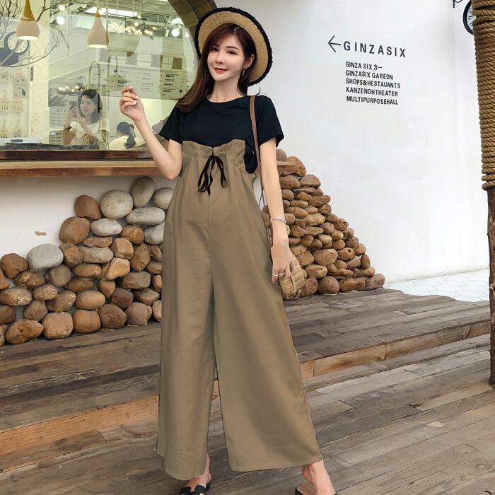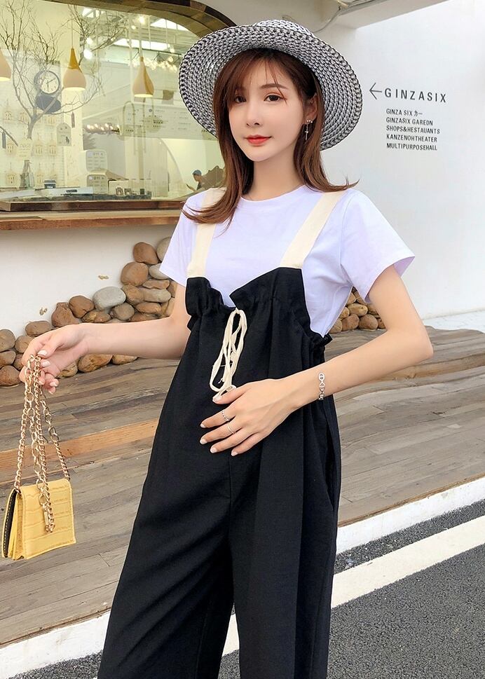 レディース セットアップ Tシャツ サロペット ワイドパンツ ガウチョパンツ 袖あり 半袖 サスペンダー 授乳口 上下セット かわいい 大人可愛い シンプル カジュアル おしゃれ お洒落 かっこいい こなれ感 ラフ メンズライク M L XL 2XL 白 ホワイト 黒 ブラック オフホワイト 無地 春 夏 20代 30代 マタニティ 学生 通学 デート お出かけ 女子会 リゾート 旅行 海 プール 着回し 普段使い 韓国 韓国系 ファッション 脚長 送料無料 | Rena 韓国ファッション レディースアパレル