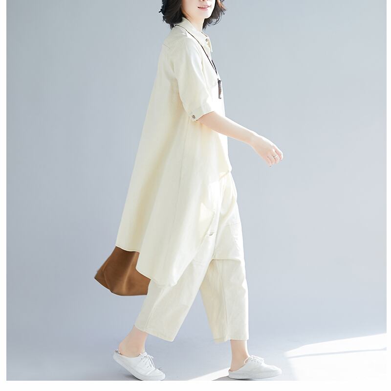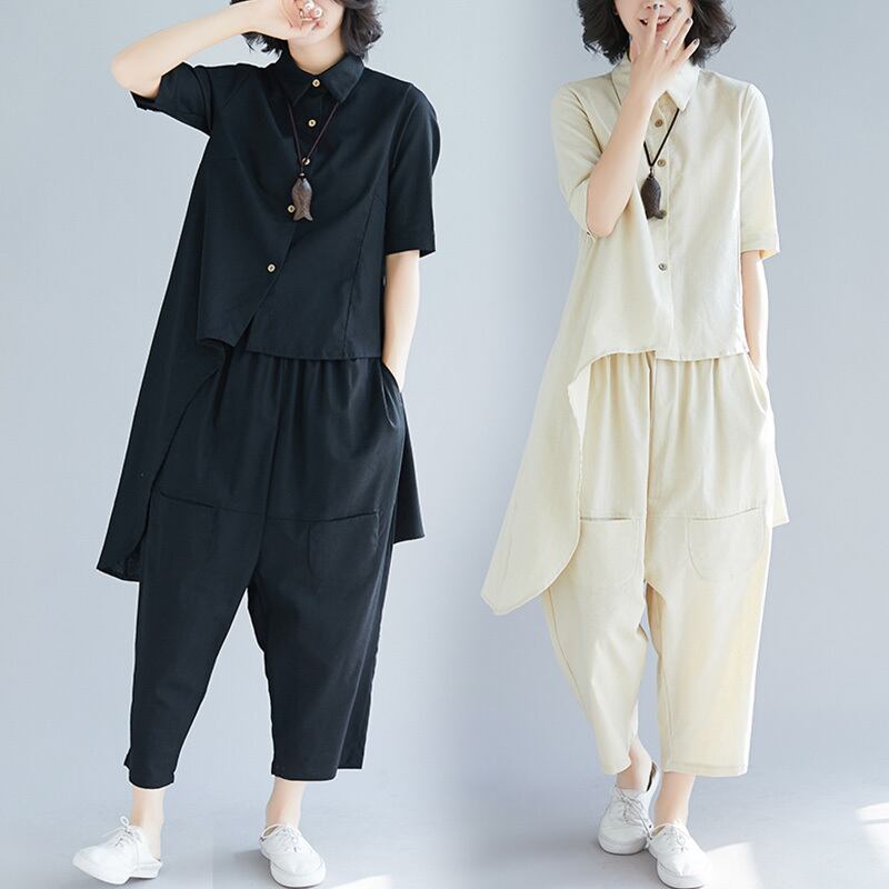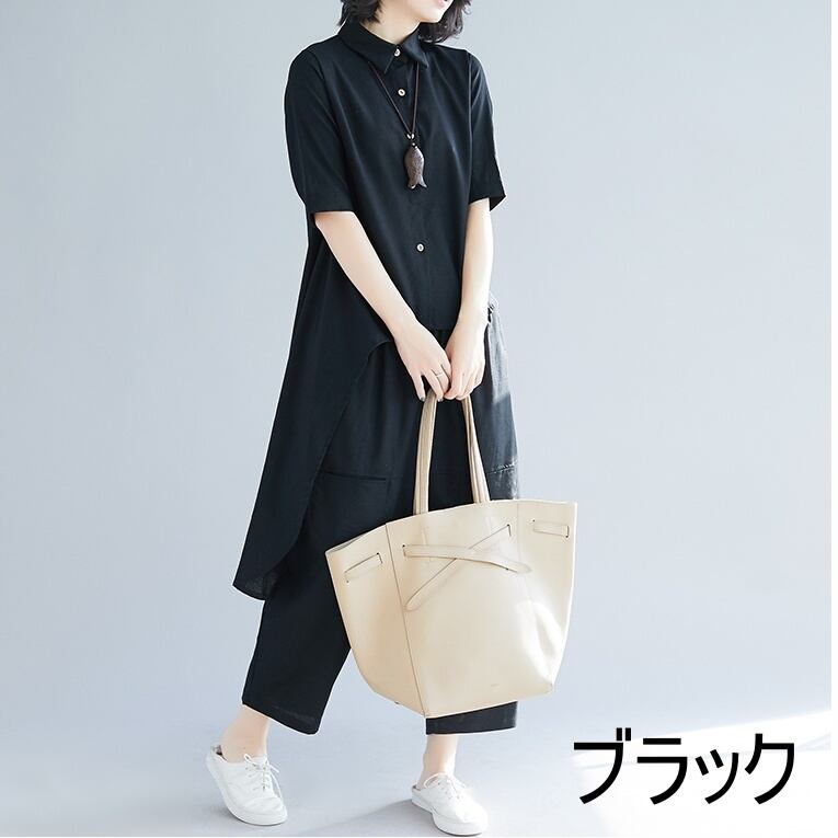 レディース トップス ボトムス パンツ セットアップ シャツ バギーパンツ 袖あり 半袖 5分袖 五分袖 シンプル カジュアル おしゃれ お洒落 かっこいい こなれ感 ラフ メンズライク ルーズ 個性的 モード系 M L XL 2XL ゆったり 白 ホワイト 黒 ブラック オフホワイト 無地 春 夏 秋 20代 30代 学生 通学 デート お出かけ 女子会 お泊まり 休日 リゾート 海 普段使い 韓国 韓国系 ファッション 体系カバー 送料無料 | Rena 韓国ファッション レディースアパレル