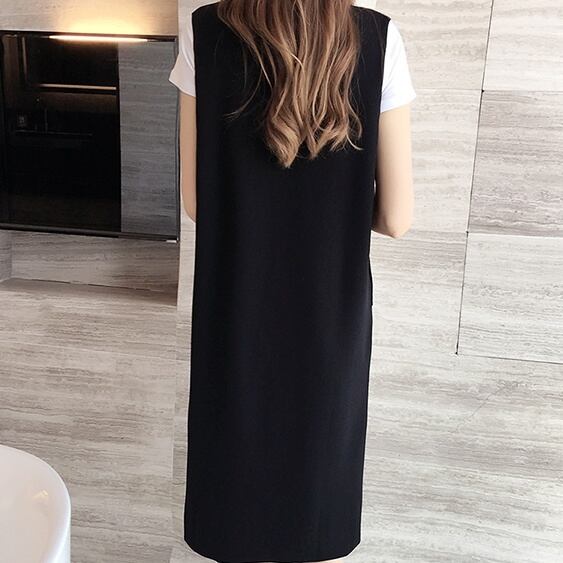 レディース ワンピース オールインワン 膝丈 ひざ丈 Vネック ストレート Iライン スリット かわいい 大人可愛い きれいめ シンプル カジュアル 大人 上品 おしゃれ お洒落 かっこいい こなれ感 ラフ メンズライク XL 2XL 3XL 4XL 5XL 黒 ブラック 無地 春 夏 秋 10代 20代 30代 オフィス OL 通勤 学生 通学 デート お出かけ 女子会 お泊まり 休日 リゾート 普段使い 韓国 韓国系 ファッション 体系カバー 送料無料 | Rena 韓国ファッション レディースアパレル