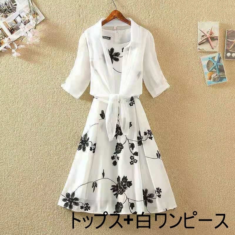 レディース ワンピース セットアップ シャツ ブラウス 白シャツ 膝下 袖あり Aライン シフォン 透け感 2点セット かわいい 大人可愛い きれいめ シンプル 大人 上品 おしゃれ お洒落 メンズライク S M L XL 2XL 3XL 白 ホワイト 黒 ブラック 花柄 フラワー 春 夏 10代 20代 30代 オフィス ビジネス OL 通勤 学生 通学 デート お出かけ 女子会 お泊まり 休日 リゾート 旅行 普段使い 韓国 韓国系 ファッション 送料無料 | Rena 韓国ファッション レディースアパレル