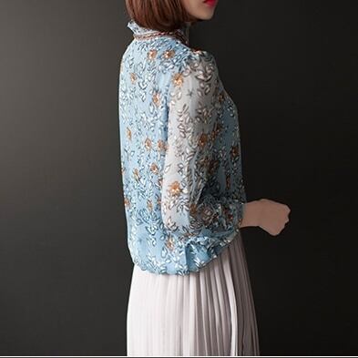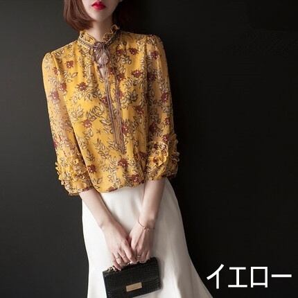 レディース トップス シャツ ブラウス 袖あり 7分袖 七分袖 長袖 スタンドカラー シフォン フリル リボン かわいい 大人可愛い きれいめ 大人 上品 おしゃれ お洒落 こなれ感 メンズライク ガーリー M L XL 2XL 青 ブルー ベージュ イエロー 花柄 小花柄 フラワー 春 夏 秋 20代 30代 オフィス ビジネス OL 通勤 学生 通学 デート お出かけ 女子会 お泊まり 休日 リゾート 旅行 普段使い 韓国 韓国系 ファッション 送料無料 | Rena 韓国ファッション レディースアパレル