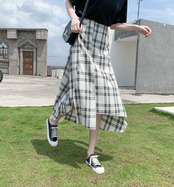 レディース ボトムス フレアスカート 7分丈 ミディアム丈 フレア かわいい 大人可愛い きれいめ シンプル 大人 上品 おしゃれ お洒落 大人可愛い 大人女子 こなれ感 メンズライク ガーリー S M L XL チェック柄 春 夏 秋 20代 30代 通学 デート お出かけ 女子会 休日 旅行 海 普段使い 韓国 韓国系 送料無料 | Rena 韓国ファッション レディースアパレル