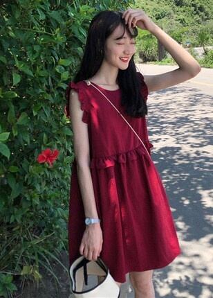 レディース ワンピース ミニ丈 ショート丈 袖なし ノースリーブ Vネック ラウンドネック 襟なし フレア フリル かわいい おしゃれ お洒落 こなれ感 ラフ メンズライク ラブリー キュート ガーリー S M L XL 黒 ブラック ワインレッド 無地 春 夏 10代 20代 30代 デート お出かけ 女子会 リゾート 旅行 海 プール 着回し 韓国 韓国系 ファッション 美脚 送料無料 | Rena 韓国ファッション レディースアパレル