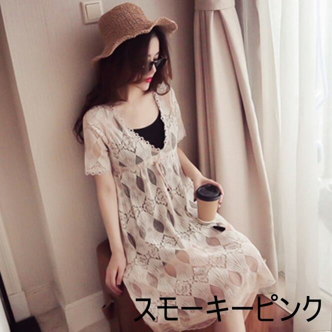 レディース ワンピース ひざ丈 ミディアム丈 袖あり 半袖 Vネック 襟なし レース 透け感 かわいい 大人可愛い おしゃれ お洒落 こなれ感 メンズライク ラブリー キュート ガーリー M L XL 2XL 3XL 4XL 5XL ピンク 無地 春 夏 10代 20代 30代 学生 通学 デート お出かけ 女子会 休日 着回し 韓国 韓国系 ファッション 送料無料 | Rena 韓国ファッション レディースアパレル