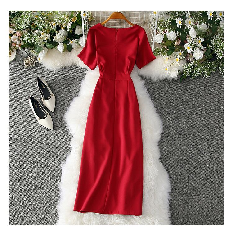 レディース ワンピース ミモレ ミモレ丈 ロング ロング丈 袖あり 半袖 Vネック Aライン ウエストマーク 前開き ポリエステル 大人可愛い きれいめ 大人 上品 おしゃれ お洒落 大人可愛い 大人女子 エレガント M L XL 2XL 赤 レッド 黄色 イエロー ピンク 無地 春 夏 秋 10代 20代 30代 40代 デート お出かけ パーティー イベント ファッション コーデ スタイル モテ 送料無料 | Rena 韓国ファッション レディースアパレル