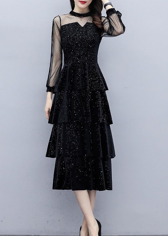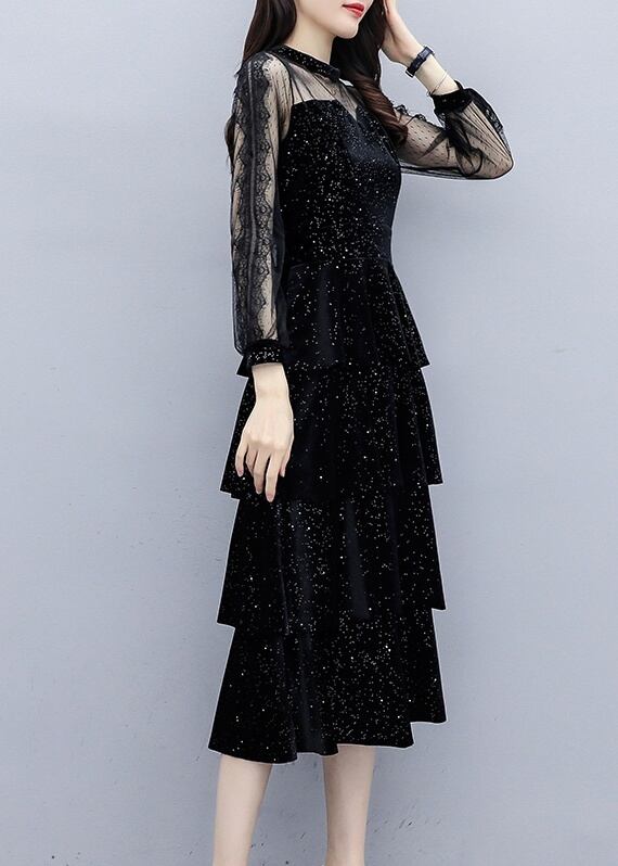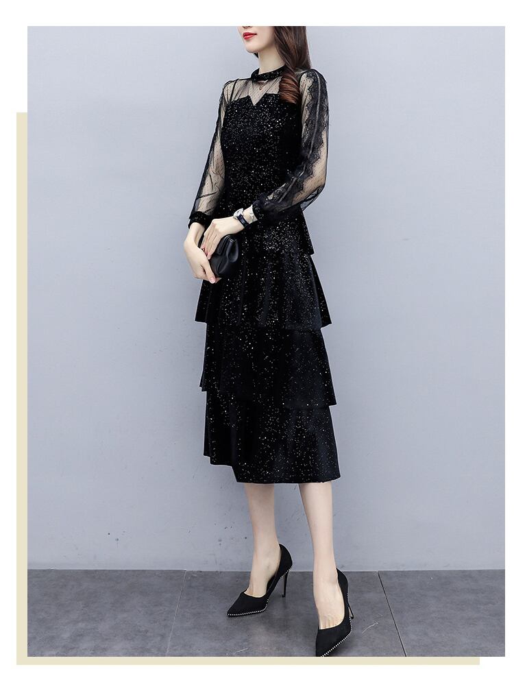 レディース ワンピース ティアードワンピース ミモレ ミモレ丈 ロング ロング丈 袖あり 長袖 Uネック ラウンドネック Aライン ティアード レース 切り替えデザイン ポリエステル 大人可愛い きれいめ 大人 上品 おしゃれ お洒落 大人可愛い 大人女子 セクシー エレガント S M L XL 2XL 3XL 黒 ブラック 無地 柄 ドット柄 春 夏 秋 10代 20代 30代 デート お出かけ パーティー イベント ファッション コーデ スタイル モテ 送料無料 | Rena 韓国ファッション レディースアパレル