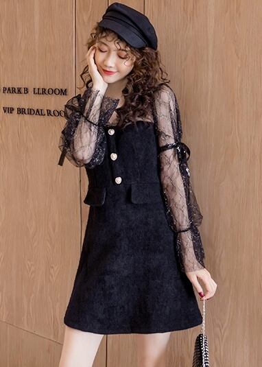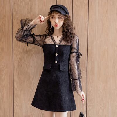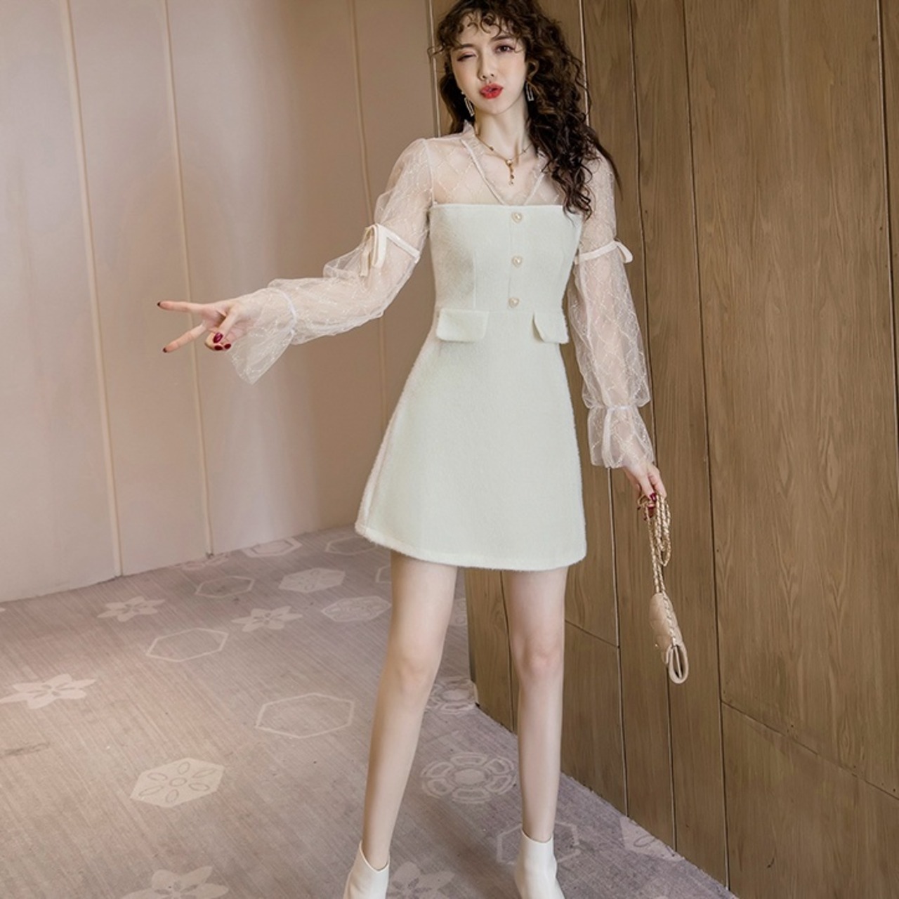 レディース ワンピース ミニ ミニ丈 ショート ショート丈 袖あり 長袖 Vネック 襟付き スタンドカラー タイト 細身 切り替えデザイン レース 透け感 シースルー 薄手 かわいい 大人可愛い 大人 上品 おしゃれ お洒落 大人可愛い 大人女子 セクシー エレガント S M L XL 白 ホワイト 黒 ブラック 無地 春 夏 10代 20代 30代 デート お出かけ パーティー イベント ファッション コーデ スタイル モテ 送料無料 | Rena 韓国ファッション レディースアパレル
