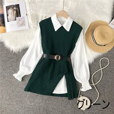 レディース トップス シャツ ブラウス カットソー ニットソー セーター 白シャツ 白トップス 袖あり ノースリーブ 長袖 Uネック クルーネック 襟付き ベルト ポリエステル 2点セット ツーピース かわいい 大人可愛い きれいめ カジュアル 大人 上品 おしゃれ お洒落 大人可愛い 大人女子 S M L XL 白 ホワイト 黒 ブラック 赤 レッド 緑 グリーン 茶色 ブラウン 灰色 グレー 無地 春 秋 10代 20代 30代 OL 通勤 お出かけ 着回し 普段使い 重ね着 送料無料 | Rena 韓国ファッション レディースアパレル