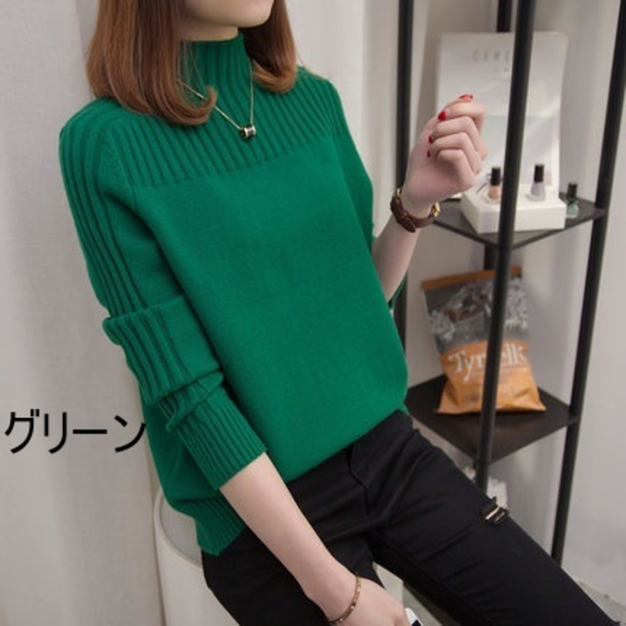 1着は持っていたい、秋冬に欠かせないリブニットセーターです。