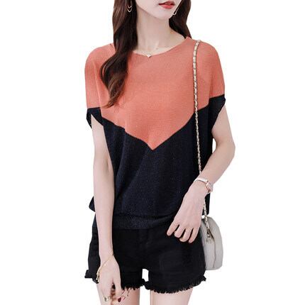 レディース トップス ニット 袖あり 半袖 ラウンドネック サマーニット かわいい 大人可愛い きれいめ シンプル 大人 上品 おしゃれ お洒落 かっこいい 大人可愛い 大人女子 こなれ感 ラフ メンズライク ラブリー キュート ガーリー M L XL 2XL 3XL オレンジ バイカラー 春 夏 20代 30代 40代 オフィス OL 通勤 学生 通学 デート お出かけ 女子会 休日 着回し 普段使い 韓国 韓国系 ファッション 送料無料