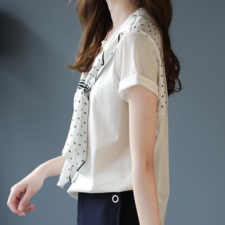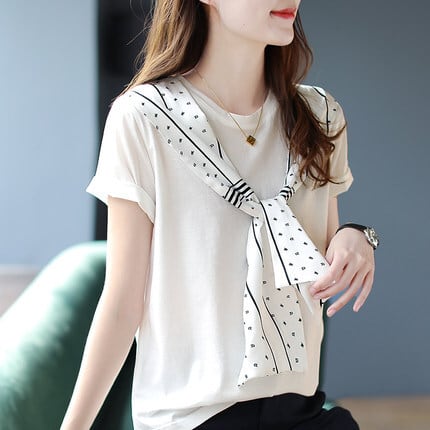 スカーフがドッキングした、遊び心のあるTシャツです。