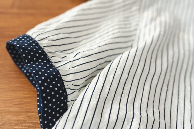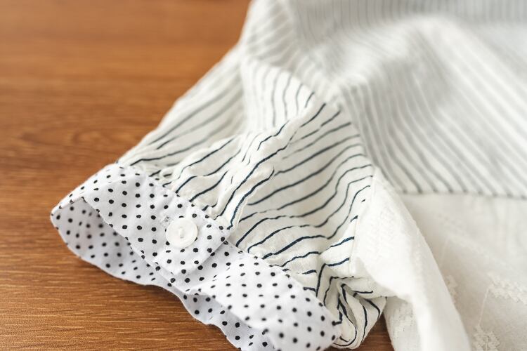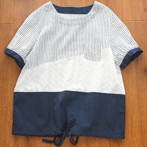 ストライプとドット柄の組み合わせが可愛らしいトップスです。