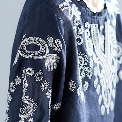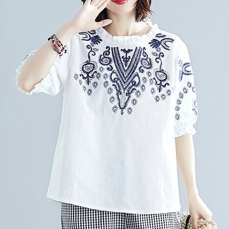 レディース トップス ブラウス 袖あり 半袖 5分袖 五分袖 ラウンドネック 刺繍 大人可愛い シンプル カジュアル 大人 おしゃれ お洒落 大人女子 ラフ キュート M L XL 2XL 白 ホワイト ネイビー 春 夏 10代 20代 30代 40代 女性用 ママ デート お出かけ 公園デビュー 女子会 休日 普段使い ファッション コーデ 送料無料 | Rena 韓国ファッション レディースアパレル