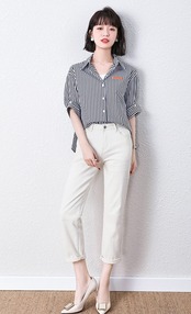 縦ストライプが春夏にぴったりの5分袖シャツです。