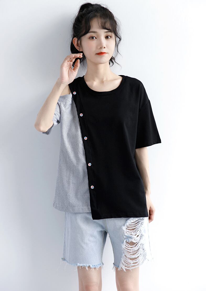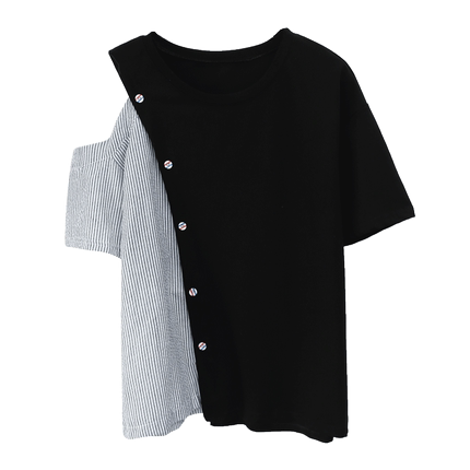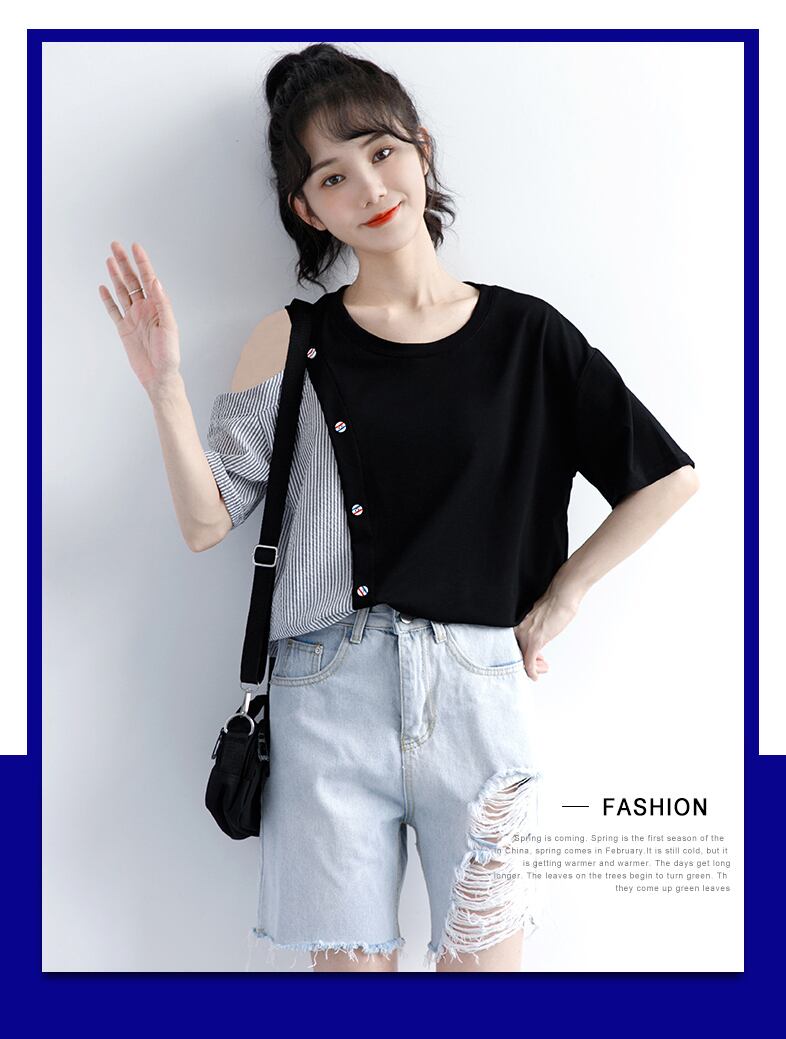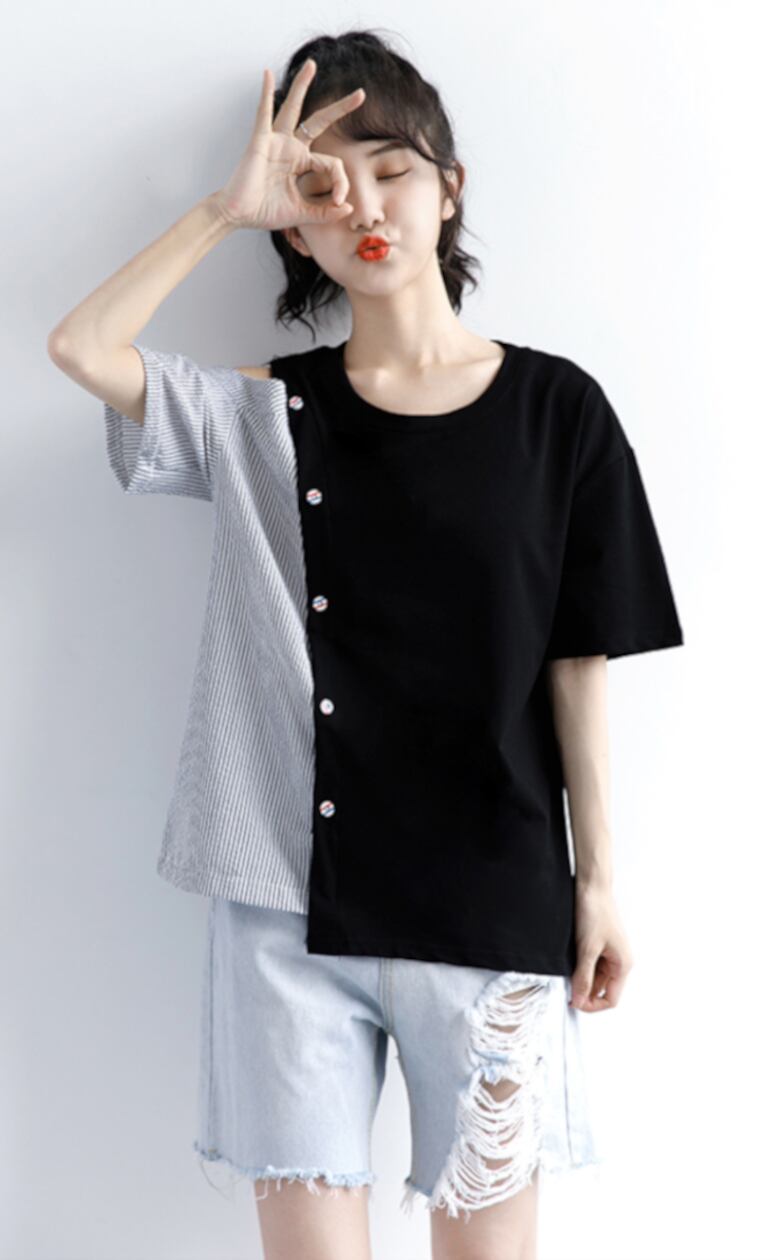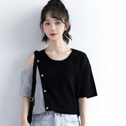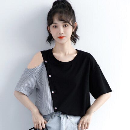 レディース トップス Tシャツ カットソー 袖あり 半袖 Uネック ワンショルダー ワイド 切り替えデザイン かわいい 大人可愛い カジュアル 大人 おしゃれ 大人女子 こなれ感 ラフ キュート ガーリー 抜け感 S M L ゆったり 黒 ブルー 無地 ストライプ 春 夏 10代 20代 30代 女性用 デート お出かけ 休日 普段使い ファッション 楽ちん 送料無料 | Rena 韓国ファッション レディースアパレル